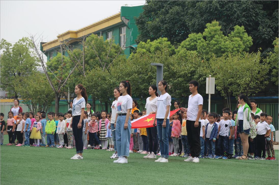 担当本次升旗仪式的是示范园的新教师。他们着装统一,在音乐声中,迈着整齐而坚定的步伐走向升旗台。升完旗以后,他们用亲切的话语和小朋友打了招呼、做了自我介绍。小朋友对新老师的到来,表示了热烈的欢迎。随后薛静副园长做国旗下讲话,预祝小朋友们在幼儿园度过一个快乐、有意义的新学期。