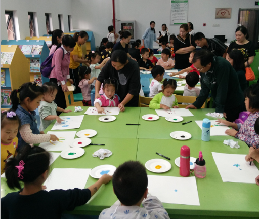 2017年9月23日午后,江宁示范幼儿园“示韵飘香”志愿者包敏玲、刘瑶来到江宁图书馆,为孩子们和家长们带来了一节生动有趣的美工活动——《漂亮的指印画》。为了活动的顺利展开,两位志愿者进行了精心的活动内容设置和材料的准备。活动中,孩子们聚精会神的看着老师,积极地举手回答问题,看着一个个小手指蘸颜料,用勾线笔轻轻加几笔,就变成有意思的东西后,他们变得更加活跃,不同年龄段的孩子们有着不同的主意和想法。