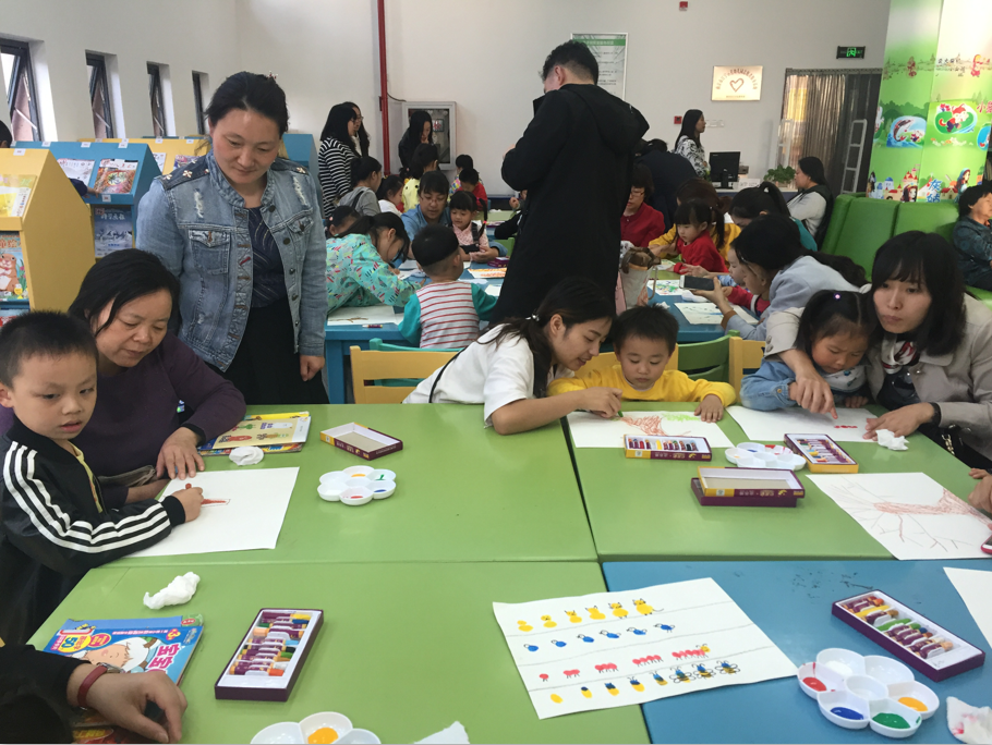 2017年10月28日,示范幼儿园“免费巴士课堂”在朱鸣琴、胥洋两位老师的带领下又一次开进了江宁图书大厦,本次活动主题是《有趣的手指印画》。