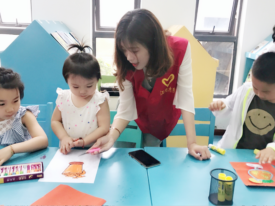 孩子们就是天生的画家,短短一二十分钟的画作,其创意和表现力让在场的家长都不由的赞赏。在小朋友们进行最后一部分拼贴活动时,志愿者鲁涵老师和刘慧老师分工有序,配合相当默契,分别为小朋友们提供了所需的不同材料和工具,帮助他们完善自己的“多彩果汁”。涂色和拼贴的巧妙结合,让现场20多名小朋友及家长都赞不绝口,表示非常喜欢。